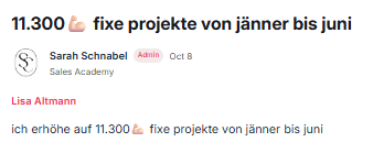 Carina hat direkt einen Raketenstart hingelegt und nach 2 Wochen ihr VIP Mentoring verkauft. Seitdem hat sie ihre gesamte Produktpalette und Struktur angepasst und wächst fleißig mit ihrer verantwortungsvollen Rolle der Mentorin.